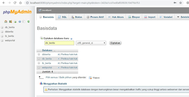 - Buat Nama Database "db_berita" "utf8_general_ci"